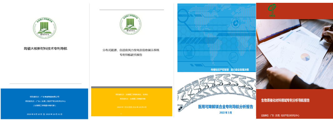 二是制定专利分析报告。学院以东莞市重点产业研发为中心,持续追踪重点企业技术创新动态,关注区域创新能力变化趋势,针对重点产业技术领域形成专利预警报告。为东莞市各行业企业提供技术主题检索、法律状态检索、同族专利检索、专利稳定性检索、专利侵权检索等特定信息检索服务。为东莞市各行各业开展知识产权数据统计和分析服务,制定知识产权分析报告。2023年,调研企业50多家,完成专利导航报告、产业创新发展报告、专利简报等报告20余份,为各级市场监督管理部门和知识产权管理部门决策提供有力支撑。完成学科进展分析报告10余份,为学校学科发展提供决策辅助。