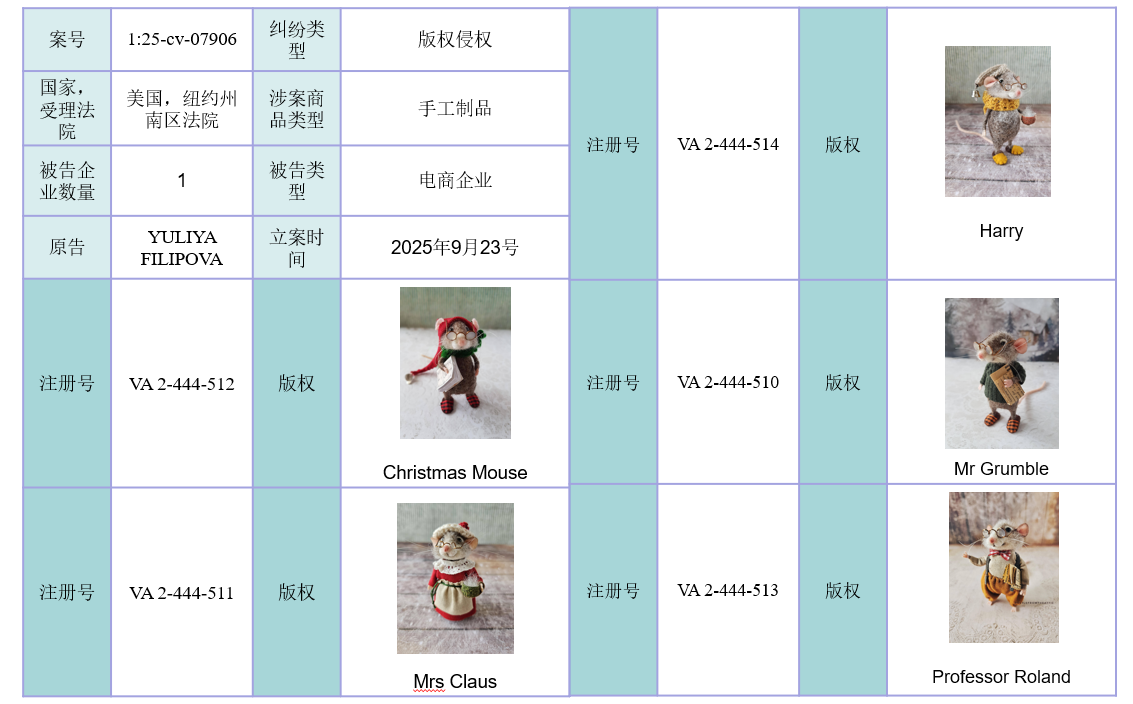 为加强监测预警、护航东莞企业“出海”,东莞市知识产权保护中心(海外知识产权纠纷应对指导东莞分中心)常态化开展涉美知识产权诉讼监测预警工作,9月共监测到16起美国法院公开的知识产权纠纷案件,涉37家东莞企业(均为案件被告),涵盖13起商标、6起版权、1起专利类型案件,其中3起同时涉及商标版权、1起同时涉及商标专利,涉及的商品种类包括服装、玩具、厨房用具、家居用品、体育用品、家纺产品、配饰、游戏、动画、箱包、音像制品、乐器及其配件、运动用品、摩托车、运动型汽车及其配件、艺术作品等热门出口品类。
