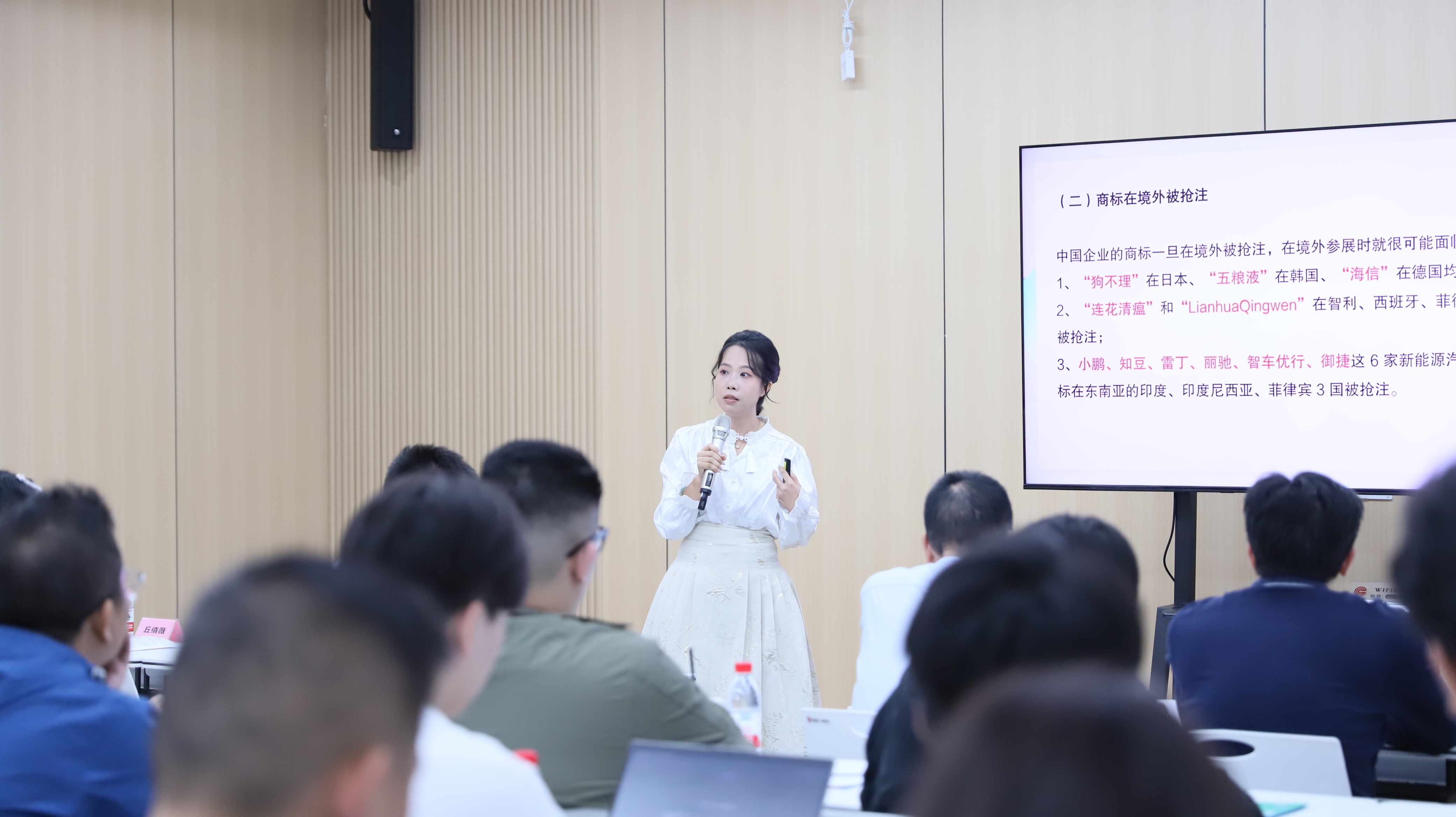 在主题分享环节,特邀专家丘倩薇女士围绕“出海企业海外展会注意事项,东南亚商标事务及案例分析”进行了专题授课。她结合玩具行业特点,深入剖析了东南亚地区商标注册、维权难点及典型案例,并就企业在境外参展前的知识产权布局、海关备案、风险识别与应对策略等提出了专业建议。