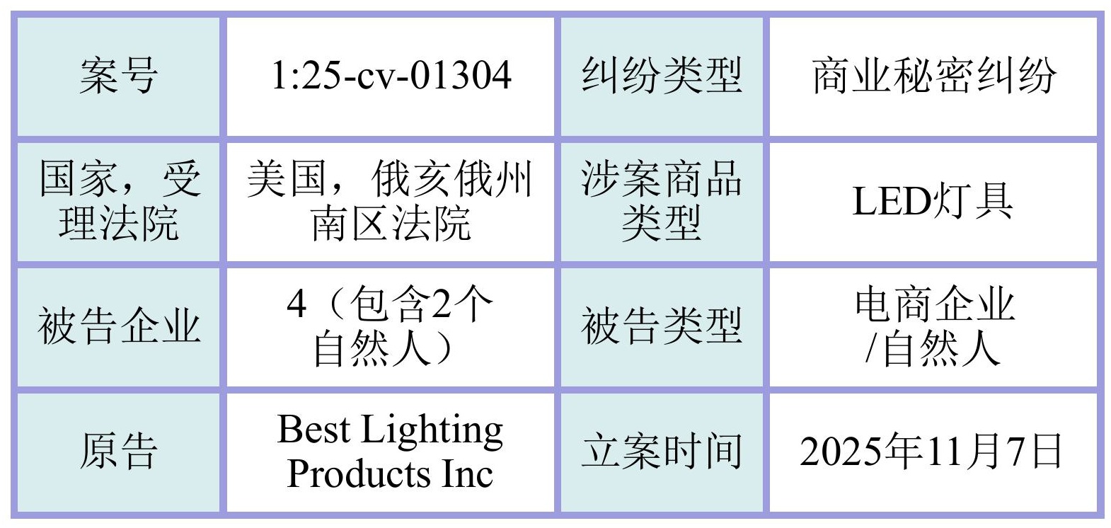 为加强监测预警、护航东莞企业“出海”,东莞市知识产权保护中心(海外知识产权纠纷应对指导东莞分中心)常态化开展涉美知识产权诉讼监测预警工作,11月共监测到16起美国法院公开的知识产权纠纷案件,涉30家东莞企业、2个自然人(均为案件被告),涵盖5起商标、11起版权、2起专利、1起商业秘密类型案件,其中1起同时涉及商标版权、2起同时涉及商标专利,涉及的商品种类包括香水、皮具、箱包、服装、饰品、护肤美妆、玩具、运动产品、灯具、插画、艺术作品等热门出口品类。