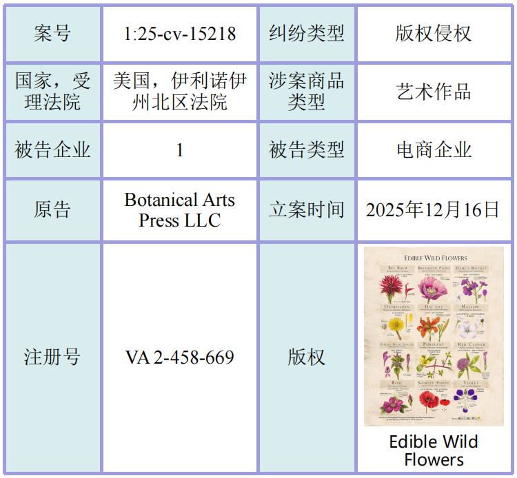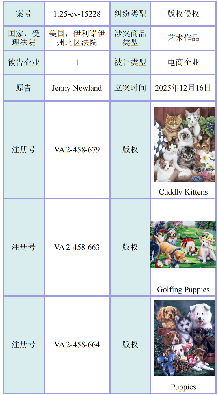 为加强监测预警、护航东莞企业“出海”,东莞市知识产权保护中心(海外知识产权纠纷应对指导东莞分中心)常态化开展涉美知识产权诉讼监测预警工作,2025年12月共监测到30起美国法院公开的知识产权纠纷案件,涉52家东莞企业(均为案件被告),涵盖8起商标、24起版权、1起专利类型案件,其中1起同时涉及商标版权、1起同时涉及专利商标专利,涉及的商品种类包括箱包、服装、鞋、饰品、运动产品、电子游戏、灯具、插画、艺术作品等热门出口品类。