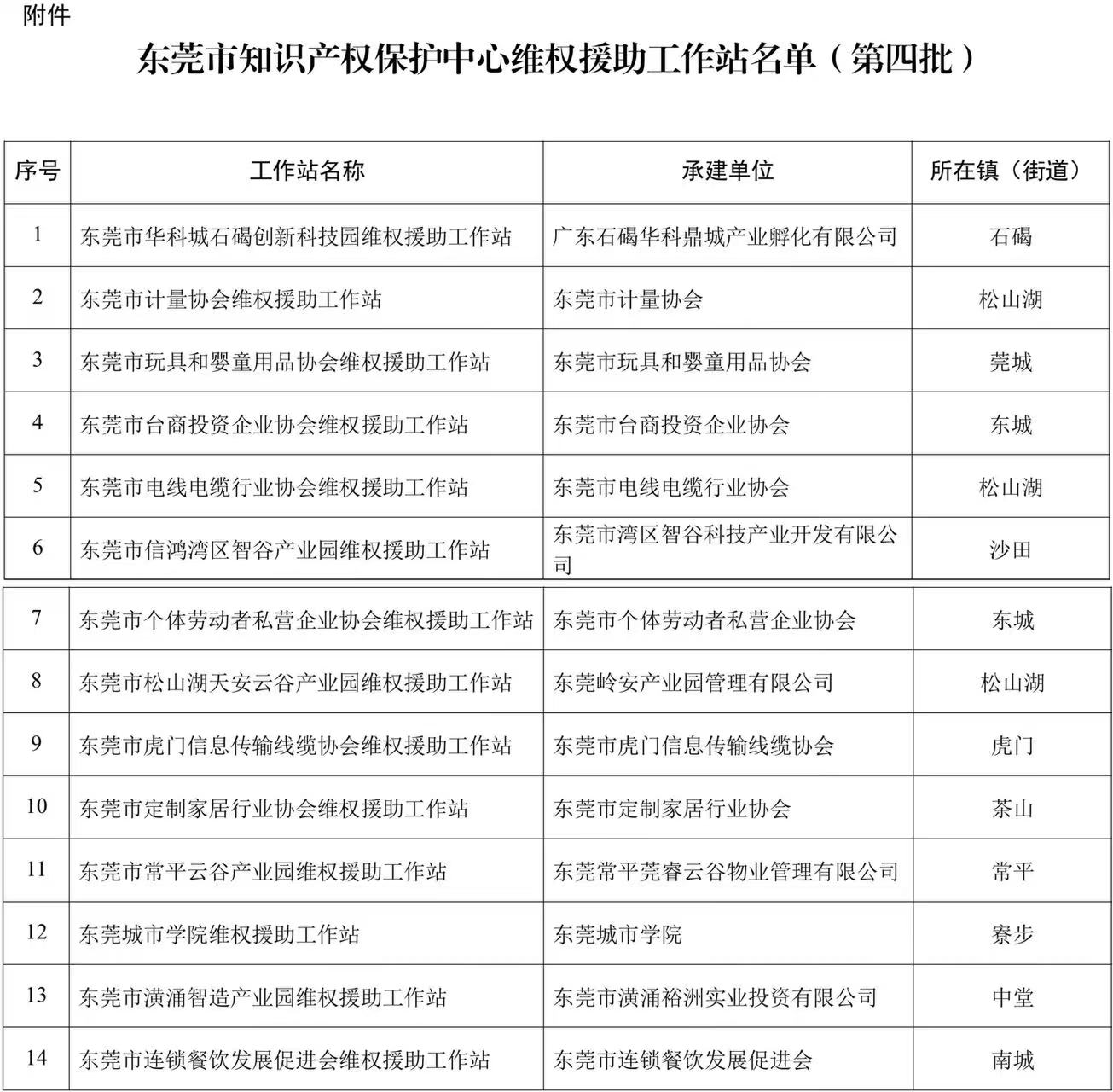 附件:东莞市知识产权保护中心维权援助工作站名单(第四批)