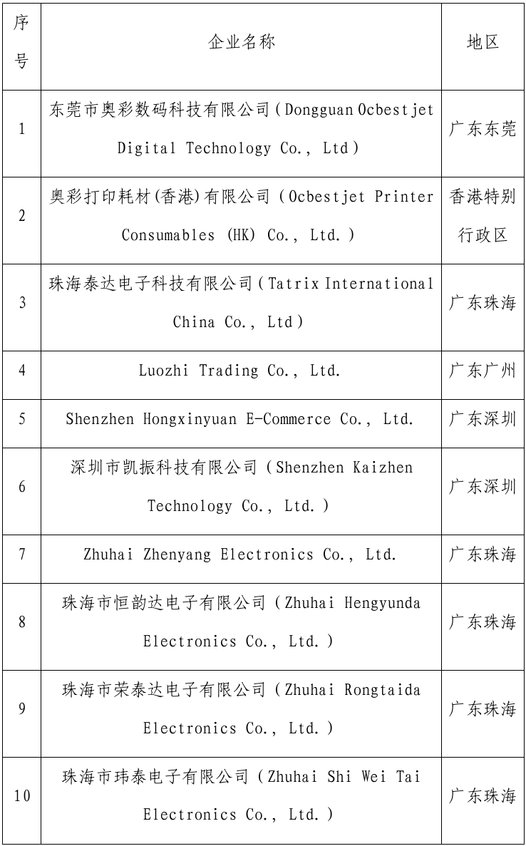 2025年5月13日,日本Seiko Epson Corporation公司联合其子公司Epson America, Inc.和Epson Portland, Inc.向美国国际贸易委员会提出两起337调查申请,调查编码分别为337-TA-3827和337-TA-3828,两起调查被告名单相同,包括东莞市奥彩数码科技有限公司(Dongguan Ocbestjet Digital Technology Co., Ltd)在内的18家我国企业,337-TA-3827调查涉案美国专利号为8,540,347、9,061,508、11,535,037、11,820,150、12,246,539,337-TA-3828调查涉案美国专利号为8,764,172、9,370,934、11,535,038、12,240,248、12,240,249。